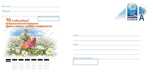 俄罗斯7月8日发行全俄节日 - 亲情、爱情和忠贞日10周年邮资封