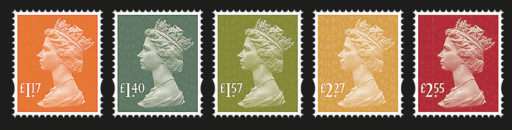 英国皇家邮政自3月27日起将提高邮政资费,所以将要发行一些新面值普通邮票。女王像邮票为不干胶邮票,由De La Rue凹版印刷。其他普通邮票由国际安全印刷集团印制。