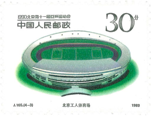 第十一届亚洲运动会邮票(第二组)选取亚运会4个体育场馆为图案。它们分别是:北京工人体育场、北郊游泳馆、北京大学生体育馆和朝阳体育馆。其中北京工人体育场是这届亚运会的主会场。开、闭幕式将茌这里举行。北郊游泳馆是亚洲最大的现代化游泳馆。朝阳体育馆在亚运会期间安排排球比赛。