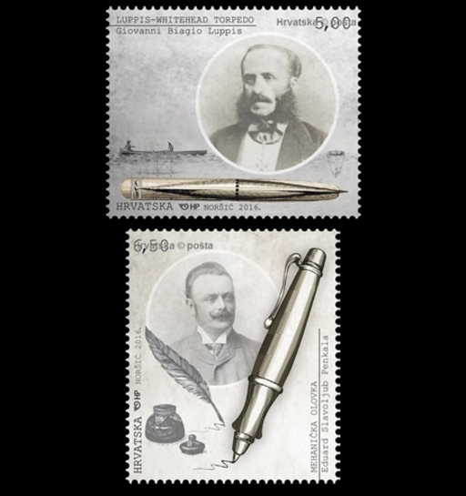 克罗地亚4月27日发行自来水笔和鱼雷的发明家邮票