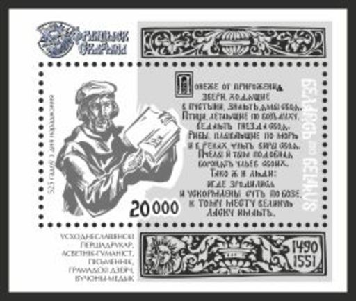 名称:白俄罗斯4月16日发行弗朗西斯·斯卡利纳诞辰525周年邮票