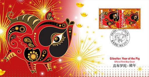 名称:直布罗陀1月30日猪年邮票纪念邮戳