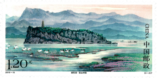 鄱阳湖是中国第一大淡水湖,为我国四大淡水湖之首。位于江西省北部,面积4125平方公里,是世界上最大的鸟类保护区和长江江豚重要栖息地、种质资源库。同时,鄱阳湖还是长江干流重要的调蓄性湖泊,鄱阳湖水量、水质的持续稳定,直接关系到鄱阳湖周边乃至长江中下游地区的用水和生态安全,是构建“长江绿色生态走廊”的重要屏障。《鄱阳湖》特种邮票的发行,能很好的展示鄱阳湖周边的自然风光、人文历史、建设成就等,加强我省对外宣传;增进与世界各国人民的友谊,实现赣鄱文化的国际传播;宣传以鄱阳湖流域为代表的中国生态建设成果,落实党中央大力推进生态文明建设的重要体现;宣传鄱阳湖在长江经济带建设重大战略中起到的重要作用。邮票采用国画的方法来表现鄱阳湖气韵悠远的山水美景。石钟奇音,表现鄱阳湖与长江交汇处的石钟山的湖光山色;鞋山神韵,表现鄱阳湖上众多岛屿之一、拥有悠久历史人文景观的鞋山岛(又称大孤山);湿地奇观,表现都阳湖国家湿地公园的自然景观以及最主要的珍稀候鸟一东方白鹳、天鹅、白鹤等。邮票版式一边饰展示了鄱阳湖山水长卷的局部,将三版的边饰连在一起,可以构成一幅鄱阳湖风光的全景画面。
