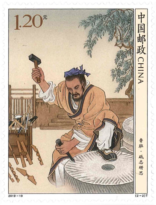 鲁班,中国古代建筑工程家,被建筑工匠尊为祖师,民间亦称百工师祖。姓公输名般,或称公输班、公输子等,春秋时期鲁国人,因称鲁班。据古籍记载,木工使用的曲尺即为鲁班发明,又有传说墨斗、刨子、钻子、锯子等工具也均由鲁班发明。位于山东省滕州市的鲁班堤,相传为鲁班带领弟子取灵山石打造成碌碡所建,现仍作为一项水利工程发挥着泄洪阻水的作用。这套邮票歌颂了以鲁班为代表的中国古代工匠的勤劳、智慧和他们造福社会的美德。