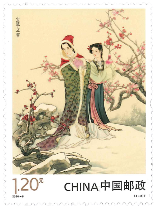 此套邮票是中国邮政自2014年发行的《中国古典文学名著——< 红楼梦>》系列邮票的第四组,描绘了小说第四十六回至第七十四回的五段故事场景。