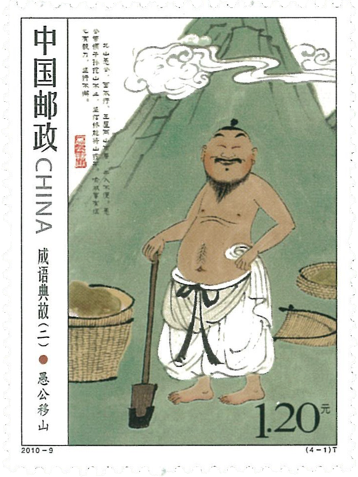 成语作为中华民族的语言艺术精华,以其言近旨远、内涵隽永和形象生动的特点,传承了中华几千年博大精深的历史文化。本套邮票选取的四则成语为教育类,意在教化启迪。古时北山愚公,面太行、王屋两山而居,出入不便。愚公带领子孙挖山不止,坚信终能将山移平。愚公移山喻做事有恒心有毅力,坚持不懈。春秋时,越王勾践战败,为吴所虏,回国后忍辱负重,以 柴草为床,每食尝苦胆,后终灭吴。卧薪尝胆喻刻苦自励、志图恢复。战国时,秦围赵都。赵国使臣平原君求救于楚。门客毛遂自请随往,关键时刻按剑直言,说服楚王同意联赵抗秦。毛遂自荐喻自告奋勇、自我推荐。晋时,祖逖立志为国效力,每日听到鸡鸣便起床练剑,刻苦习武,终成一代名将。闻鸡起舞喻志士及时奋发。
