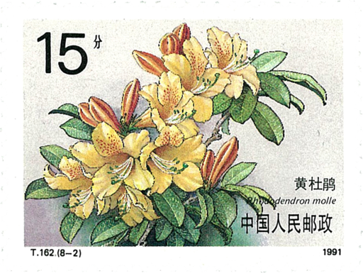 一套邮票图案上的9种杜鹃花,有的是我国特产,有的是珍贵的观赏植物。