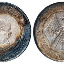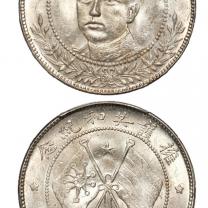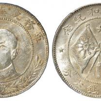 民国元年军政府造四川银币五角一枚,Y-455/LM-367;1918年唐继尧正面像拥护共和纪念库平三钱六分银币一枚,Y-479.1/LM-863,均为极美至近未使用品