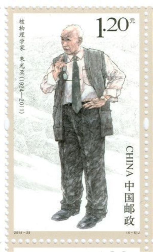 2014年是中国原子弹成功爆炸五十周年。中国邮政定于10月16日发行2014-25《中国现代科学家(六)》纪念邮票一套六枚,拟表现表现核物理学家王淦昌、核物理学家邓稼先、核物理学家朱光亚、空气动力学家郭永怀、大气物理学家赵九章、计算机技术专家王选六位现代科学家。