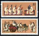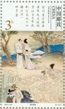 邮票设计以影像资料和戏曲剧照为素材,确保人物服饰、姿态忠于戏曲原作。人物整体以中国工笔画技法绘制,特别是人物神态,撷取黄梅戏名家神韵,以期带给读者认同感、亲切感。用色方面,着重在黄梅戏舞台服装的基础上适当加入中国画色彩元素,使整体画面清新隽美,赏心悦目。该套邮票由张旺设计,辽宁省沈阳邮电印刷厂印制。