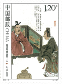 这套邮票特别约请当代著名书画家范增先生手绘创作,以白描的手法和精湛的人物造型能力,描绘了中国古代关于琴棋书画的四个著名典故。高山流水,取自俞伯牙钟子期高山流水遇知音的传说故事。弈秋课徒,表现棋手弈秋教徒授艺的典故。怀素临池,表现唐代书法家怀素少年时蕉叶练字的轶事。道子画壁,表现有画圣之称的唐代画家吴道子壁上画钟馗的传奇故事。