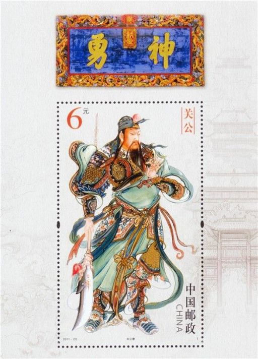 注:特别制作《关公》小型张四连张一枚,材质为绢质,面值24元,整张规格214×294毫米。