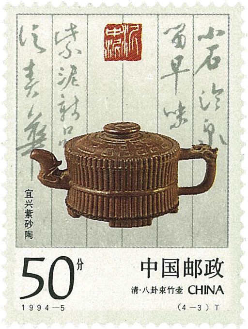 宜兴位于沪宁杭地区的中心享有“陶都”之美称。而宜兴紫砂陶又是陶都的一颗璀璨的明珠。该套票上的紫砂珍品是历代紫砂名家的代表作,反映了紫砂陶艺的主要风格和造型。令人领略和欣赏到紫砂陶的艺术神韵。