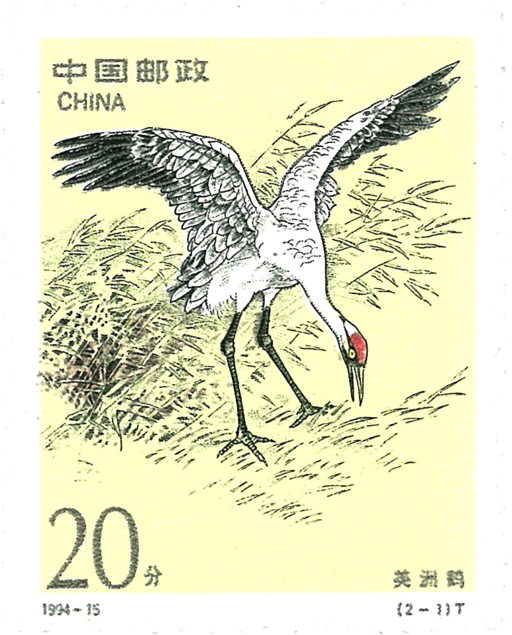 这是中美联合发行的一套邮票,其目的在于促进两国邮政业务及印刷技术的交流合作。邮票以中美两国的珍稀种黑颈鹤与美洲鹤为画面,通过鹤这一象征吉祥的动物来表现和平友好的主题和反映两国科学工作者保护野生动物的成果。黑颈鹤的头、颈、飞羽和尾羽为黑色体羽为灰白色。这是我国鹤类中唯一的高原种,被列为一级保护动物。美洲鹤全身为白色,只有翼端为黑色,头脸部有一块红色区域。产于北美洲是属美国法律保护的珍稀动物。