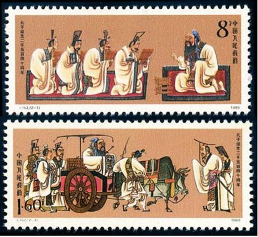 2-2为“周游列国”。描绘了孔子中年后历游宋、卫、陈、曹、郑、蔡、齐、楚等国的情况。公元前497年,孔子50岁那年,因受到排挤,离开鲁国,想把自己的仁政主张在其他一些国家得到实施。