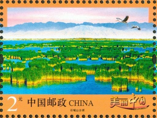 《美丽中国》普通邮票第二组延续了第一组的设计风格,选取我国东南西北各地风光,其地貌差别大,风景多样,方寸之上展示了我国的幅员辽阔,山川秀美。第一图黑龙江省牡丹江市双峰林场雪乡,表现冬季积雪覆盖的北国风光;第二图贵州省兴义市万峰林,其喀斯特地形地貌典型突出,形成了独特的锥状喀斯特地质景观;第三图宁夏回族自治区石嘴山市沙湖,沙漠与水域毗邻而居,既有大漠戈壁之雄浑,又有江南水乡之秀美,画面表现了当地良好的自然和生态环境;第四图浙江省杭州市西溪湿地,为国家湿地公园,其间水道如巷、河汊如网,鱼塘栉比、诸岛棋布,动植物资源丰富。
