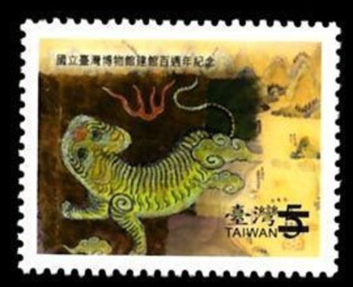 国立台湾博物馆前身为「台湾总督府博物馆」,创立于1908年,是台湾历史最悠久、以台湾自然史为特色的博物馆。2008年适逢该馆建馆百周年,台湾中华邮政特选其最具代表性的珍贵藏品「台湾民主国蓝地黄虎旗」、「郑成功画像」、「康熙台湾舆图」为主题,发行「国立台湾博物馆建馆百周年纪念邮票」1组2枚及小全张1张。