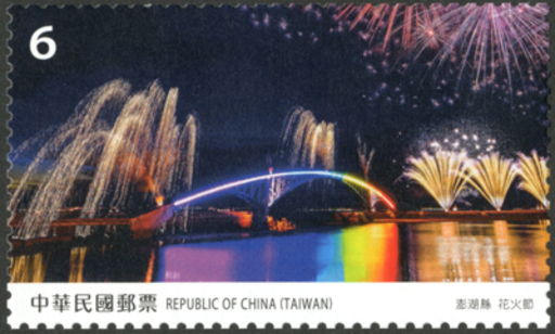 一、花火节(面值6元):为近年来澎湖县最具代表性的观光活动,每年以马公市观音亭园区为举办主场。璀璨的烟火与浪漫的海湾及西瀛虹桥相互辉映,交织出绚丽的澎湖夜空。