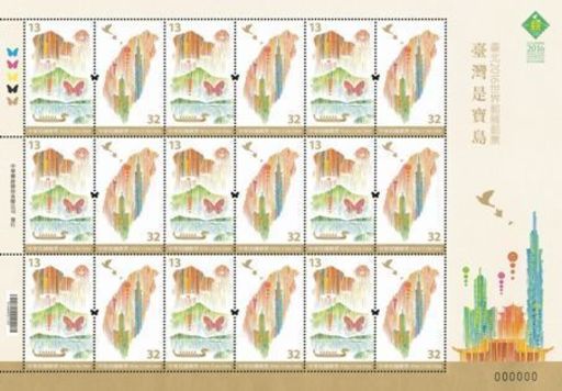 「台北2016世界邮展」于105年10月21日至26日假台北世界贸易中心展览一馆举行。配合邮展「宝岛日」主题,发行邮票1组2枚。本组邮票采横联刷设计,以彩色圆点及台湾最美的画面「微笑」构图,每组邮票间有蝴蝶造型的异形齿孔。图案简介如下: