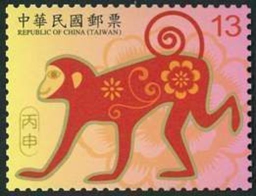 为迎接新年来临,台湾中华邮政续规划发行「新年邮票(104年版)」1组2枚及小全张1张。邮票图案延续102年及103年版设计风格,以金色及橘色展现生肖动物的活力。灵动俏皮的猴儿以花朵图案妆饰,传递猴年吉祥、喜庆的欢乐气氛,背景温暖、活泼的橘色及桃红色搭配牡丹花图案,象征猴年花开富贵,财源广进。图案简介如下: