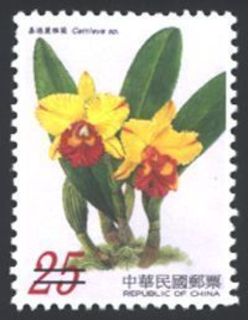 (四)嘉德丽雅兰(面值25元):复茎类着生性兰花;叶片厚硬坚挺,具巨大的假球茎,能储存较多的养分及水分,耐旱性佳。花朵巨大,花瓣色彩艳丽、丰富,且唇瓣形态及大小多变,养兰界有「兰花之王」美称。