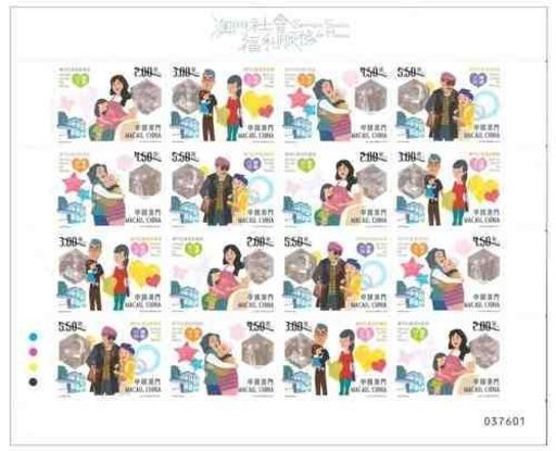 是次发行包括一套四枚邮票及一枚小型张。邮票图案描绘了特区政府于社区致力推广“关爱妇儿”、“和谐家庭”、“敬老爱老”和“伤健共融”的互助互爱精神;而小型张则展示了民间团体与政府发挥“同行乐助”的合作精神,共同为全澳市民筑建和谐社会,幸福家园。邮票和小型张上的蓝屋仔总部已成为澳门人心目中社会福利的象征,这幢已被评定为具艺术价值的历史建筑物,见证了近几十年来澳门慈善和社会服务的变迁和进步。