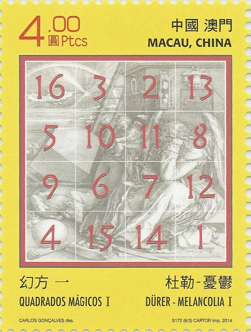 澳门邮政于2001年至2007年分别以「脱氧核糖核酸的组织及构成」、「粒子物理学的标准模型」、「廿一世纪宇宙论」、「混沌与分形」及「黄金比例」为题发行「科学与科技」系列邮票。此系列的第六套于二零一四年十月九日以『科学与科技–幻方一』为题发行新邮品。藉著这个主题,不单推广幻方背后所隐含的科学原理及文化底蕴,更希望呈现集邮史上一个独特的作品给大家。