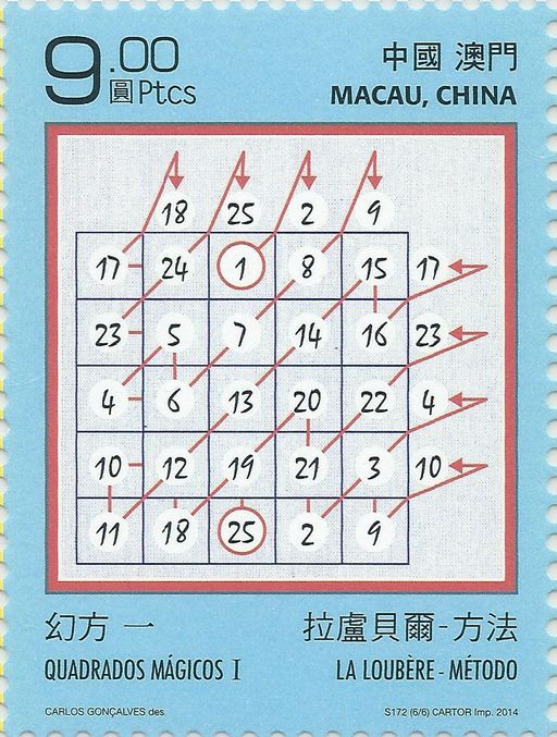 澳门邮政于2001年至2007年分别以「脱氧核糖核酸的组织及构成」、「粒子物理学的标准模型」、「廿一世纪宇宙论」、「混沌与分形」及「黄金比例」为题发行「科学与科技」系列邮票。此系列的第六套于二零一四年十月九日以『科学与科技–幻方一』为题发行新邮品。藉著这个主题,不单推广幻方背后所隐含的科学原理及文化底蕴,更希望呈现集邮史上一个独特的作品给大家。