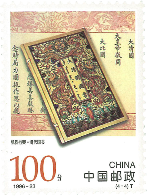 档案是社会实践活动中直接形成的具有使用价值的历史记录材料,我国建立档案记载的历史,可以追溯到公元前十四世纪至十一世纪的殷商时期。商代的史官负责档案管理,文字被刻在甲骨上;明代嘉靖年间建造的皇史宬,是明清两朝的皇家档案馆,用于记录古代档案的载体材料,有:甲骨、金文、石刻、竹简、木牍、缣帛等类。本套邮票的7幅画面,选取了我国古代具有代表性的文书档案:商代龟甲、汉代木牍、明代铁券、清代国书。