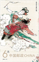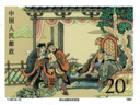 4-1为“武松打虎”。见第二十二回“横海郡柴进留宾,景阳岗武松打虎”。武松是山东清河县人,排行第二,人称“武二郎”。他身躯魁悟,相貌堂堂,秉性刚烈,武艺高强。票面图案是赤手空拳的武松把一只活生生的恶虎打死。