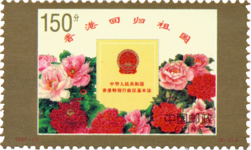 1997年7月1日在中国共产党成立76周年之际香港回到祖国怀抱。百年屈辱,一朝雪耻,民族振兴,世人瞩目。在海内外炎黄子孙恭贺祖国喜庆之时,邮电部特发行《香港回归祖国》纪念邮票一套。《中英联合声明》一该声明草签于1984年9月26日,同年12月19日,由中英两国政府首脑分别代表中英两国政府正式签字。1985年5月27日在北京互换批准书,从即日起,《中英联合声明》及其三个附件开始生效。《中英联合声明》宣告中国政府将在1997年7月1日对香港恢复行使主权。《中华人民共和国香港特别行政区基本法》一基本法包括一个序言、九章、一百六十个条文、三个附件及香港特别行政区区旗、区徽图案。基本法是香港特别行政区实施的最重要的法律。它是根据《中华人民共和国宪法》,按照香港的具体情况制定的,是符合宪法的。香港特别行政区所实行的政治体制及其运作,经济、文化制度及社会政策,香港居民享有的基本权利和自由,香港特别行政区与中央政府 的关系等,均应以基本法的规定为准。在香港特别行政区实行的任何法律、制度和政策,均不得与《中华人民共和国香港特别行政区基本法》的各项规定相抵触。