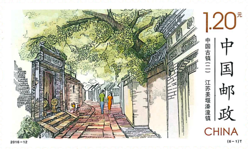 中国古镇是我国文化遗产的重要组成部分,反映了不同地区、不同民族、不同经济社会发展阶段聚落形成和演变的历史过程,真实地记录了传统建筑风貌、优秀建筑艺术、传统民俗民风和原始空间形态。近年来,随着国际社会和我国政府对文化遗产保护的日益关注,历史文化名镇、名村保护与利用,已成为地方经济社会发展的重要组成部分。本套邮票选取了六座历史悠久、风景优美、人文荟萃的历史文化名镇。江苏姜堰溱潼镇地处南通、盐城、泰州三市交界处,古称秦泓,元世祖至元十四年(1277年)设置泰州路,此间溱潼始称为镇。这里有著名的“溱湖八景”,充满浓郁的水乡风情。湖北红安七里坪镇位于鄂豫两省交界处的大别山南麗,全国重点镇和首批中国历史文化名镇,又是以黄麻起义策源地、鄂豫皖革命根据地中心和红四方面军、红25军、红28军诞生地而深植“红色基因”的著名革命历史名镇。贵州贵阳青岩镇坐落在黔中腹地贵阳是明清时期的一座古镇,地近苗乡,以前曾是军事重镇,又曾是远到川、湘、滇、桂的通衢,往来的商贾都要由此经过。上海青浦朱家角镇位于青浦区中南部,历史悠久,镇内小桥流水,古意盎然,素有“江南明珠”之称。安徽肥西三河镇地处合肥市肥西县南端,尤以镇中“八古”景观最为著名。表现了三河最具代表性的建筑风格和人文风情。广西昭平黄姚镇地处桂林漓江下游,素有“梦境家园”之称。表现了著名的带龙桥,始建于明代万历年间,是黄姚古桥梁中最有代表性的,也是古镇景致的地标。