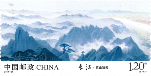 《长江》邮票以袁运甫先生国画长卷《长江万里图》为蓝本,以九图连票形式相衔展现长江万里奔腾的雄姿和气概。青藏高原各拉丹东雪山深处,雪水滴出了第一缕波涛。云南丽江石鼓镇近旁,江流逆转,惊天动地,亮出“长江第一湾”的雄浑。大江同环,毕竟东去。长江和嘉陵江相拥环抱山城重庆——这座在抗战中浴火重生,重为战略要地的中国西部唯一直辖市。进瞿塘峡口,迈出三峡第一步,巫峡十二峰接踵而来,一展神女峰仙姿。两陵峡险滩密布、悬崖飞瀑。