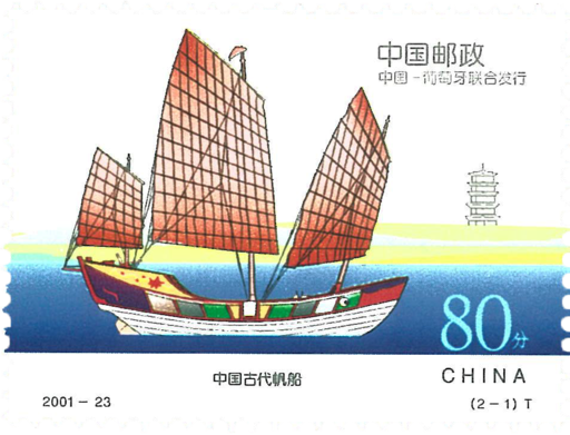 2001年l1月8日国家邮政局与葡萄牙联合发行特种邮票一套2枚。其中一枚以福建泉州出土的13世纪的中国海船为主图。泉州人勇于航船和善于造船的历史由来已久,这艘泉州出土的13世纪的中国海船建造工艺既科学又细致,充分反映了我们的祖先在宋代就已经具备了世界上最先进的造船技术。另一枚邮票图案选取的是葡萄牙14-15世纪的三桅快帆船。