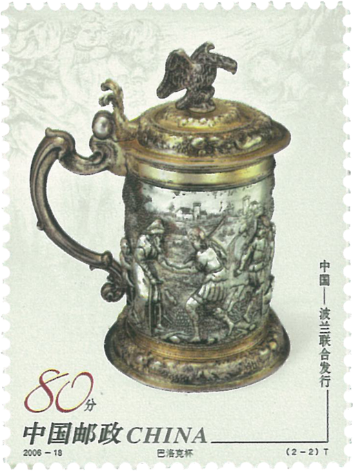 巴洛克杯高28厘米,银质,部分镀金,凸雕。杯子上刻有两则圣经故事,分别是约瑟的兄弟们向他索要粮食和约瑟同父亲会面的情景。巴洛克杯由著名的格但斯克金匠家族的彼得·罗德制作。现存华沙国家博物馆。两件文物分别展现了各自国家当时手工金银器艺术的最高水平。