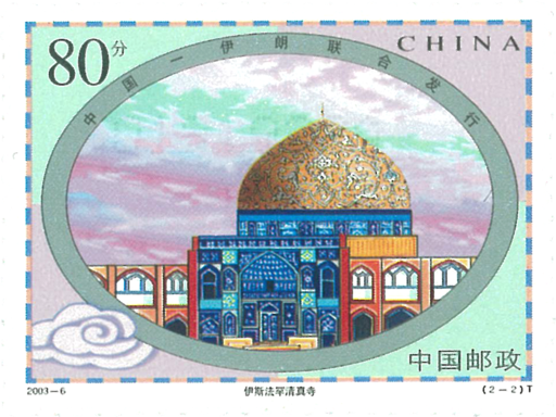 这套邮票由中国与伊朗联合发行。中国钟楼图案选用了陕西省西安市内的钟楼,该钟楼始建于明洪武十七年(1384年),明万历十年(1582年)移址重修,现为全国重点文物保护单位。伊朗清真寺图案选用的是伊朗伊斯法罕清真寺。