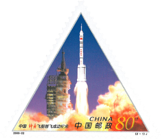 1999年11月20日6时30分,我国载人航天工程第一艘试验飞船“神舟号”,在中国酒泉卫星发射中心新建成的航天发射场升空。这是我国载人航天工程的第一次飞行试验,发射的试验飞船和新型火箭,都是我国独立研制的。“神舟号”的发射成功,向世界昭示新中国载人航天飞船技术已取得举世瞩目的成就。在中国共产党的领导下,我国的科技事业取得了突飞猛进的发展,科技实力迅速增强,成为新中国成长的基石和社会主义现代化建设的强大动力。国家邮政局在成功发射一周年之际发行此套邮票2枚。这两枚邮票为三角形,是继我国1951年发行三角形邮票后,半个世纪以来的第二次。