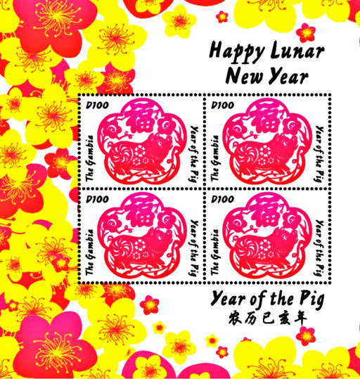 冈比亚发行的猪年小全张